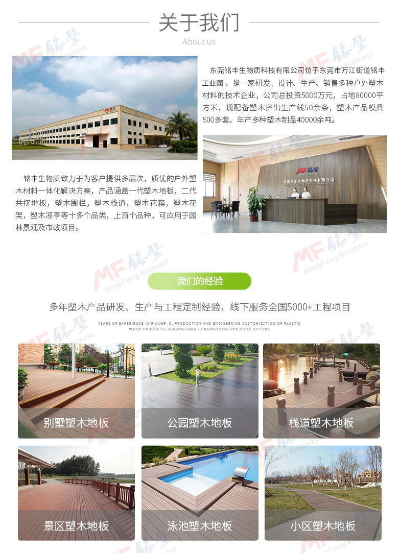 东莞铭丰木塑地板工厂专业生产:方孔木塑地板、圆孔木塑地板、实心木塑地板、二代共挤木塑地板、二代共挤实心木塑地板,方孔塑木地板、圆孔塑木地板、实心塑木地板、二代共挤塑木地板、二代共挤实心塑木地板。木塑空芯地板即塑木空心地板,又称空心木塑地板,木塑空芯地板型材用途广泛,包括园林木塑空心地板,公园木塑空芯地板,景观木塑空芯地板,小区阳台木塑空心地板,别墅塑木空心地板,景区木塑地板、广场木塑空芯地板、码头塑木空心地板,户外木塑空心地板,绿道塑木空心地板等,木塑空芯地板安装非常便捷,韧性也非常好。塑木,木塑空芯地板,塑木空心地板,木塑空心地板140×25,木塑地板型材,空心木塑地板材料,塑木木塑空心地板规格,,塑木木塑空心地板厂家,塑木木塑空心地板复合材料,木塑空心地板报价,空心木塑地板复合材料,PVC木塑空心地板,木塑空心地板规格,塑木木塑空心地板,PE塑木木塑空心地板,塑木木塑空心地板规格齐全,塑木木塑空心地板价格便宜,广东深圳铭丰塑木木塑空芯地板复合材料生产厂家直销官网。深圳木塑地板工厂、广州木塑地板工厂、惠州木塑地板工厂、佛山木塑地板工厂、江门木塑地板工厂、顺德木塑地板工厂、中山木塑地板工厂、珠海木塑地板工厂、博罗木塑地板工厂、惠东木塑地板工厂。深圳塑木地板工厂、广州塑木地板工厂、惠州塑木地板工厂、佛山塑木地板工厂、江门塑木地板工厂、顺德塑木地板工厂、中山塑木地板工厂、珠海塑木地板工厂、博罗塑木地板工厂、惠东塑木地板工厂13827286655WX。